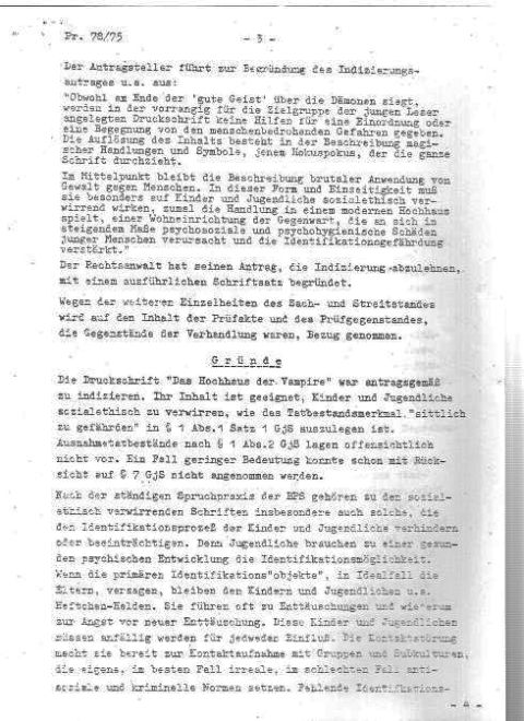Hier die Indizierungsentscheidung der Bundesprüfstelle für jugendgefährdende Schriften (zum Vergrößern bitte Windows-Taste und + auf der Tastatur drücken):