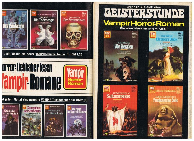 Hier ein paar Beispiele für die Werbung, die der Pabel Verlag seinerzeit für sein Gruselprogramm gemacht hat: