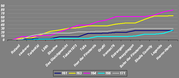 Bitte gebt wieder eure 5 Favoriten an, wobei Platz 1 die meisten Punkte und Platz 5 die wenigsten Punkte bekommt (Nach dem System 9-5-3-2-1).