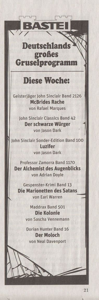 Man sollte Deine informativen Anmerkungen zur Pflichtlektüre der Bastei-Redaktion einführen, das könnte zur Richtigkeit der Angaben auf der Vorschau-Seite beitragen...