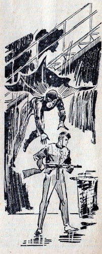Der Zeichner Theo Thomas hat für den Fledermaus-Roman 389 auf den Seiten 13, 25, 34 und 46 vier Innenillustrationen gezeichnet. Dies ist eine davon.