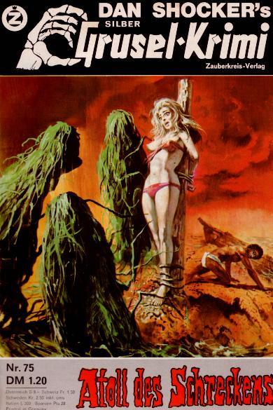 Das Titelbild ist von Rudolf Sieber-Lonati perfekt in Szene gesetzt worden. Im Blitz-Buchtext ist zwar kein Wort davon zu lesen, dass ein Seetangwesen am Bikinioberteil herumfummelt, aber das stört mich kaum. Sonst ist alles beinahe wie geschrieben. Nur der Einheimische namens Kuamo ist schon vor dem Erscheinen der Grünen davongekrochen und zurückgerudert, aber so erzeugt das Ganze ungleich mehr dramatisches Geschehen.