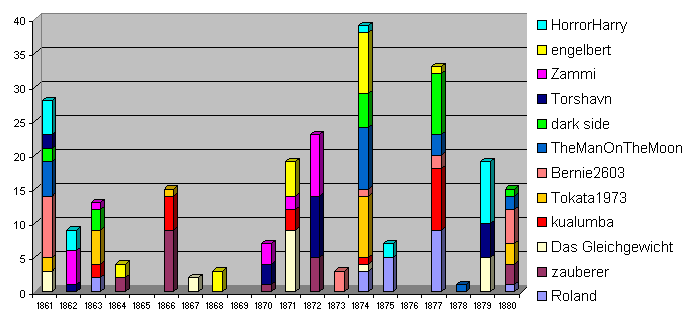 Bitte gebt wieder eure 5 Favoriten an, wobei Platz 1 die meisten Punkte und Platz 5 die wenigsten Punkte bekommt (Nach dem System 9-5-3-2-1).