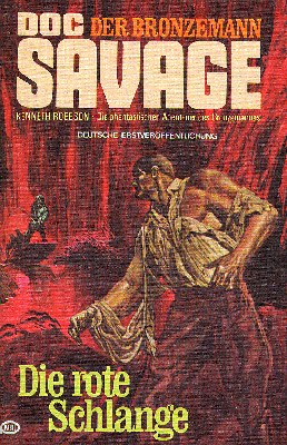 In den Arkansassümpfen geht nachts der Tod um. Unheimliches Kettengerassel ertönt, und am nächsten Morgen findet man immer wieder einen gräßlich verstümmelten Mann, dessen zerschundener Körper offenbar Bißwunden aufweist. DOC SAVAGE und seine Freunde, von den entsetzten Menschen herbeigerufen, vernehmen das Gerücht, eine riesige rote Schlange bewohne die Sümpfe und hole sich immer wieder ihre Opfer. DOC SAVAGE geht der Sache nach — aber fast zu spät erkennt er das Geheimnis der roten Schlange.