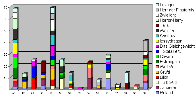 Bitte gebt wieder eure 5 Favoriten an, wobei Platz 1 die meisten Punkte und Platz 5 die wenigsten Punkte bekommt (Nach dem System 9-5-3-2-1).