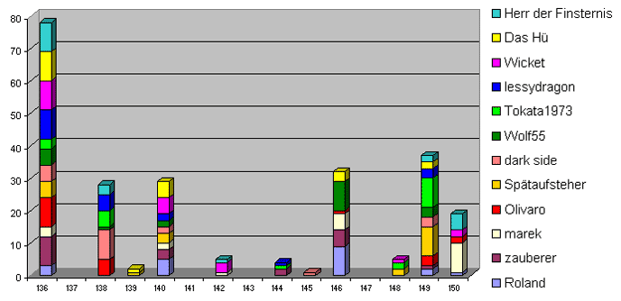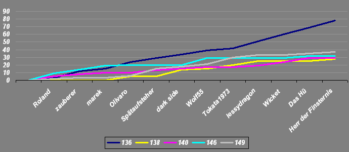 Bitte gebt wieder eure 5 Favoriten an, wobei Platz 1 die meisten Punkte und Platz 5 die wenigsten Punkte bekommt (Nach dem System 9-5-3-2-1).