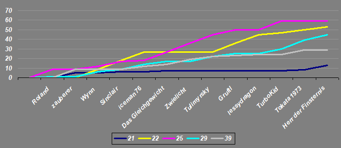 Bitte gebt wieder eure 5 Favoriten an, wobei Platz 1 die meisten Punkte und Platz 5 die wenigsten Punkte bekommt (Nach dem System 9-5-3-2-1).