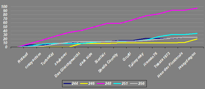 Bitte gebt wieder eure 5 Favoriten an, wobei Platz 1 die meisten Punkte und Platz 5 die wenigsten Punkte bekommt (Nach dem System 9-5-3-2-1).