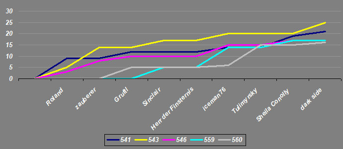 Bitte gebt wieder eure 5 Favoriten an, wobei Platz 1 die meisten Punkte und Platz 5 die wenigsten Punkte bekommt (Nach dem System 9-5-3-2-1).