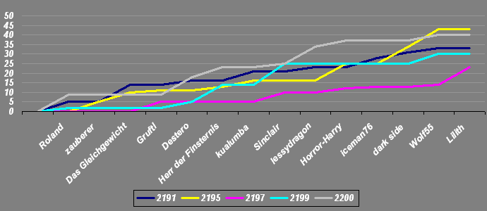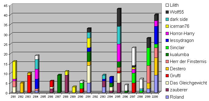 Bitte gebt wieder eure 5 Favoriten an, wobei Platz 1 die meisten Punkte und Platz 5 die wenigsten Punkte bekommt (Nach dem System 9-5-3-2-1).