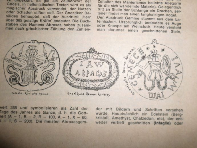Ich habe mich schon immer gefragt, was eine gnostische Gemme ist. Wurde bislang nie so richtig erklärt. Hier wird es dann als eine Art Amulett beschrieben. Eine Schlange aus Stein, die sich selbst in den Schwanz beißt. Sehr interessant.