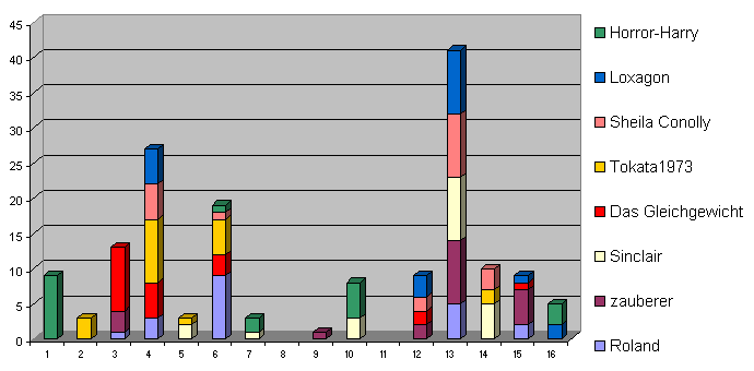 Bitte gebt wieder eure 5 Favoriten an, wobei Platz 1 die meisten Punkte und Platz 5 die wenigsten Punkte bekommt (Nach dem System 9-5-3-2-1).