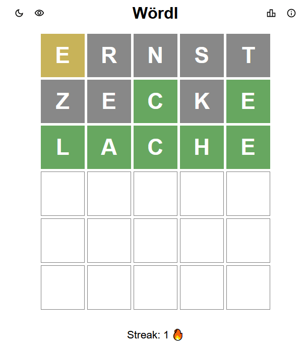 Unter https://wordle.at/ gibt es ein nettes kleines tägliches Worträtsel. Vielleicht hat der ein oder andere schonmal davon gehört.