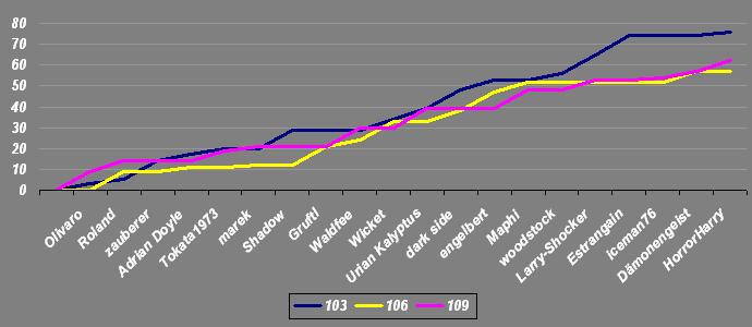 Und rein persönlich hat es mich dann noch gefreut, dass Maphi den Unheimlichen aus dem Sarkophag ebenfalls noch mit einem Punkt bedacht hat. So fühlt der sich mit meinem einen Punkt nicht ganz so einsam in seinem Kellergewölbe Augenzwinkern