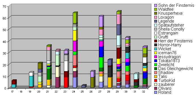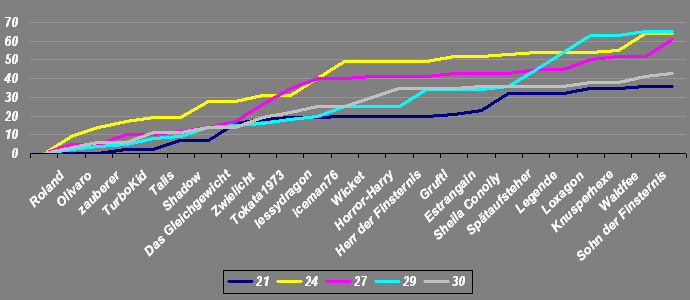 Bitte gebt wieder eure 5 Favoriten an, wobei Platz 1 die meisten Punkte und Platz 5 die wenigsten Punkte bekommt (Nach dem System 9-5-3-2-1).