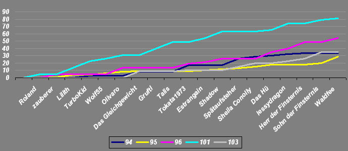 Bei Punktgleichheit wird der Roman mit der häufigeren höheren Punktzahl besser eingestuft.