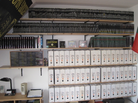 Wie ihr seht, bin ich kein Fan von qualitativer Aufbewahrung. Einfach alle Hefte in einem Regal im Arbeitszimmer gestapelt. Sie wellen sich zwar ein klein wenig, aber lesen kann man sie noch problemlos. Außer die Lexika, Abenteuerbücher und noch zu lesenden Hefte ist da alles untergebracht.