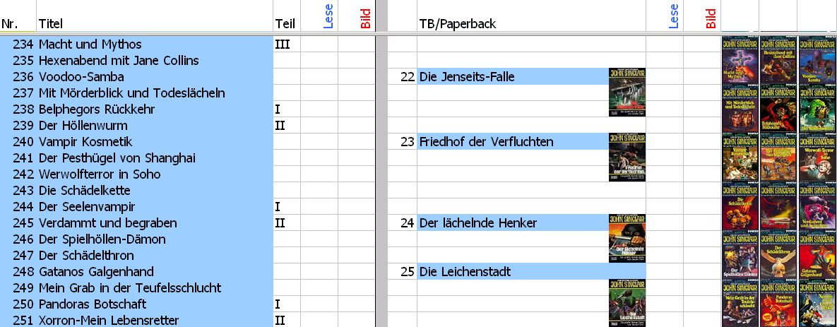 Da ich gerade dabei bin mir eine ähnliche Liste für alle Hörspiele (ab 2000) zu erstellen und mit den "John Sinclair Classics" von vorne angefangen habe zu lesen, ist es durchaus sinnvoll für mich auch in echter chronologischer Reihenfolge alle John Sinclair Hefte/Bücher durchzuarbeiten smile