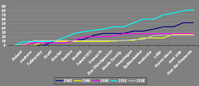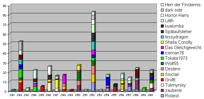 Bitte gebt wieder eure 5 Favoriten an, wobei Platz 1 die meisten Punkte und Platz 5 die wenigsten Punkte bekommt (Nach dem System 9-5-3-2-1).