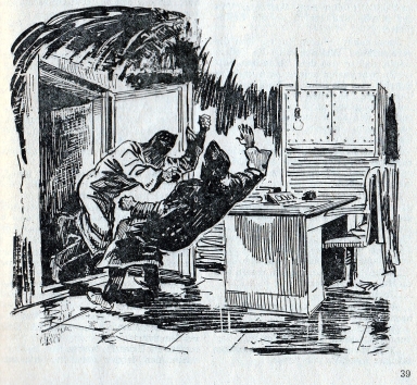 Der Zeichner Theo Thomas hat für den Fledermaus-Roman 420 auf den Seiten 12, 22, 39 und 52 vier Innenillustrationen gezeichnet. Dies ist eine davon.