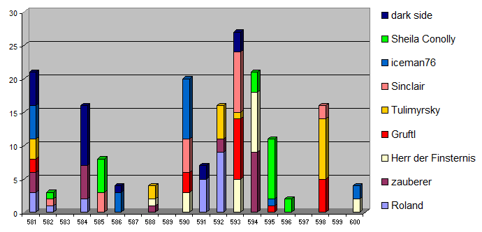 Bitte gebt wieder eure 5 Favoriten an, wobei Platz 1 die meisten Punkte und Platz 5 die wenigsten Punkte bekommt (Nach dem System 9-5-3-2-1).
