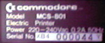Ein sehr seltener Commodore Farbdrucker. Das Typenschildhat