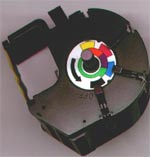 Farbband des 4 Farben Druckers. Die einzelnen Farbkammern lassen sich manuell