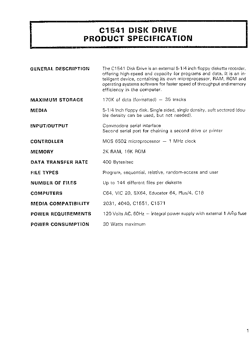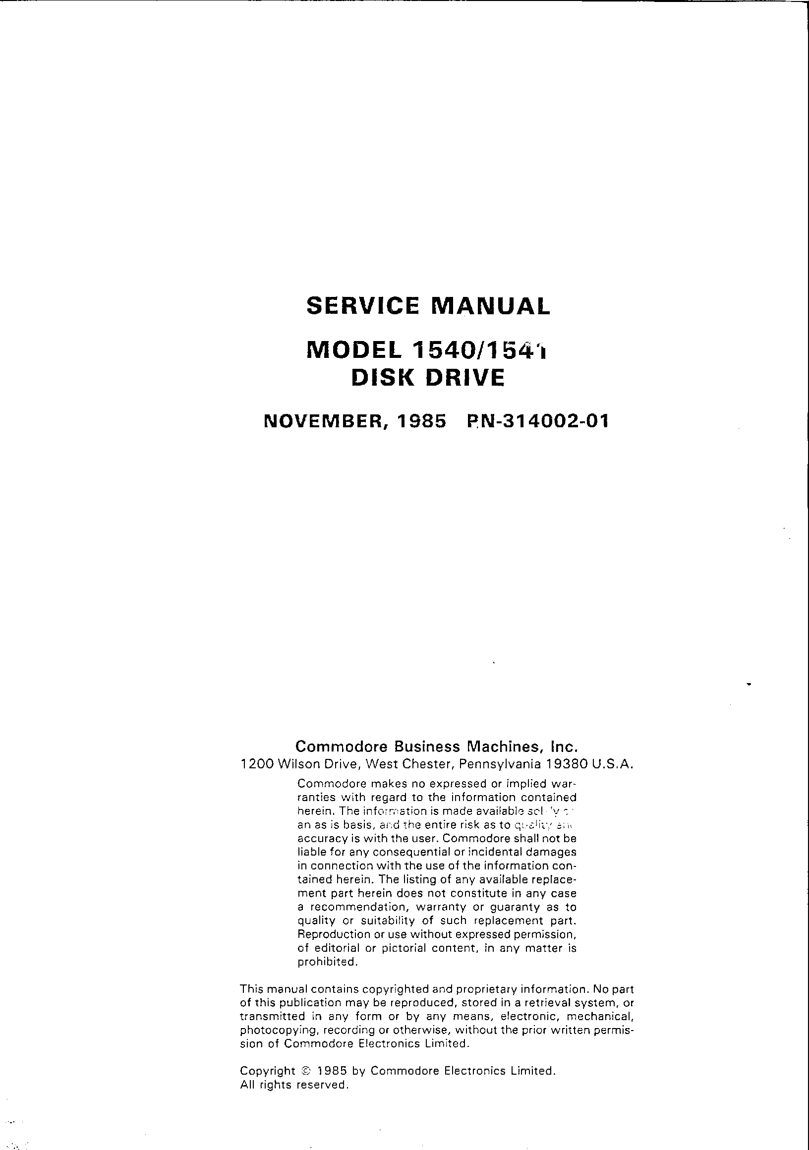 Download Service Manual Model 1540/1541 Disk Drive PN-314002-01