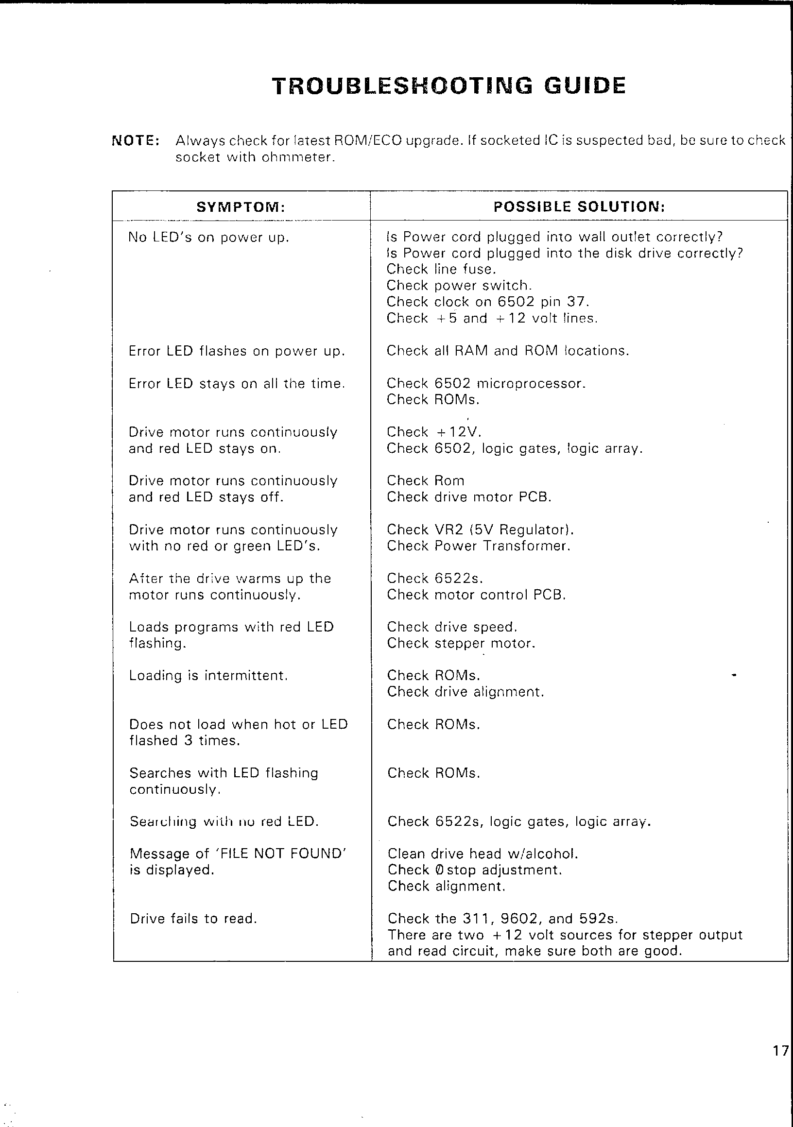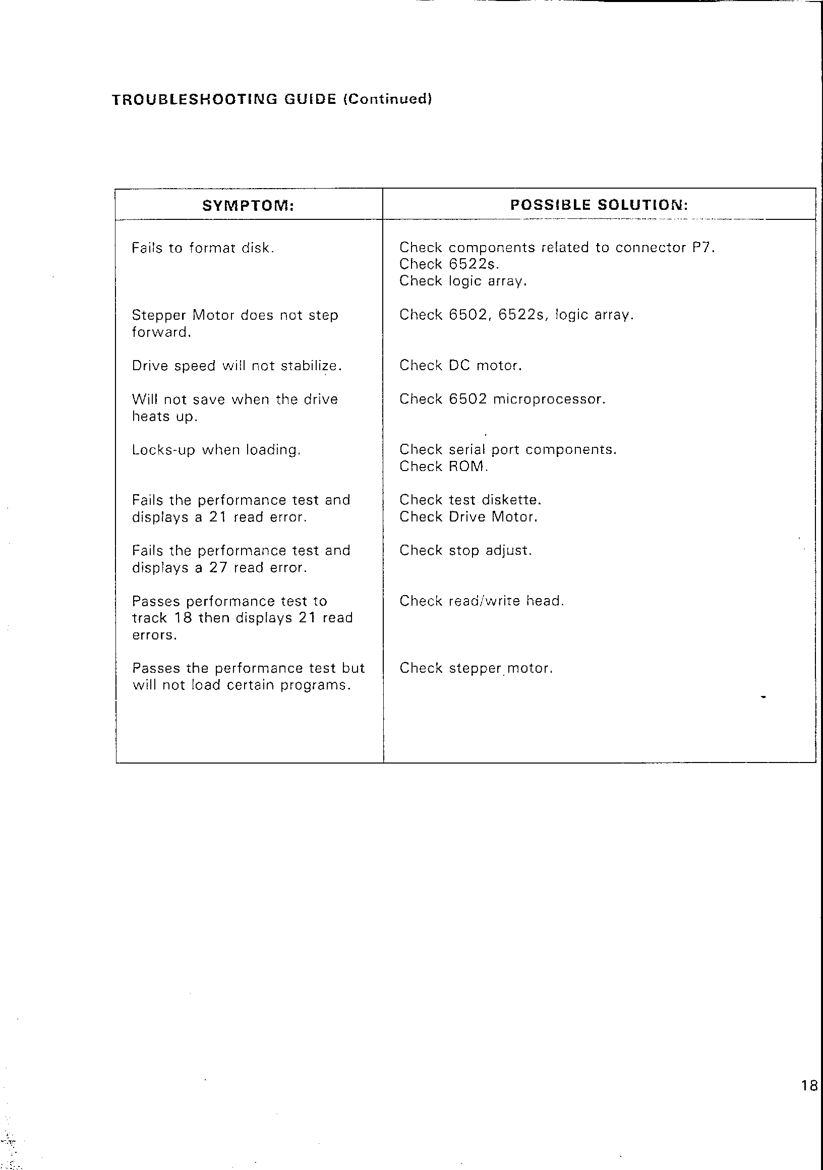 TROUBLESHOOTING GUIDE (Continued)