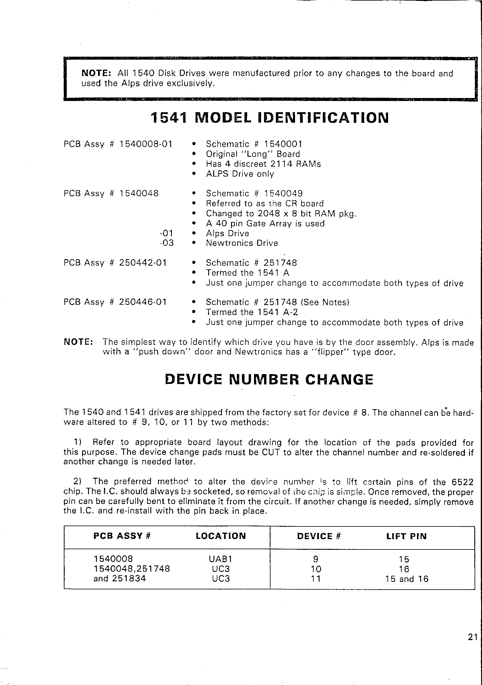 MODEL IDENTIFICATION, DEVICE NUMBER CHANGE