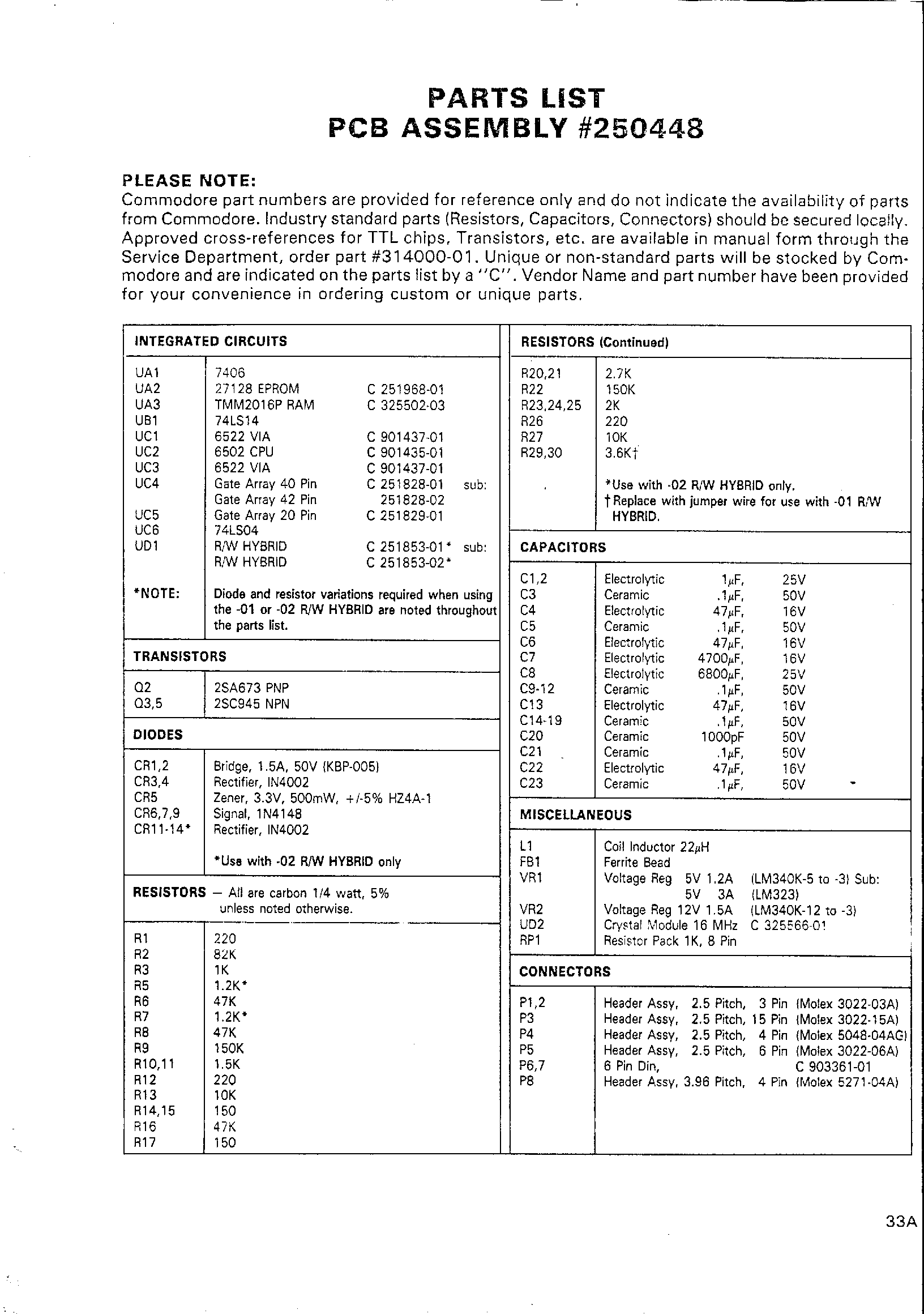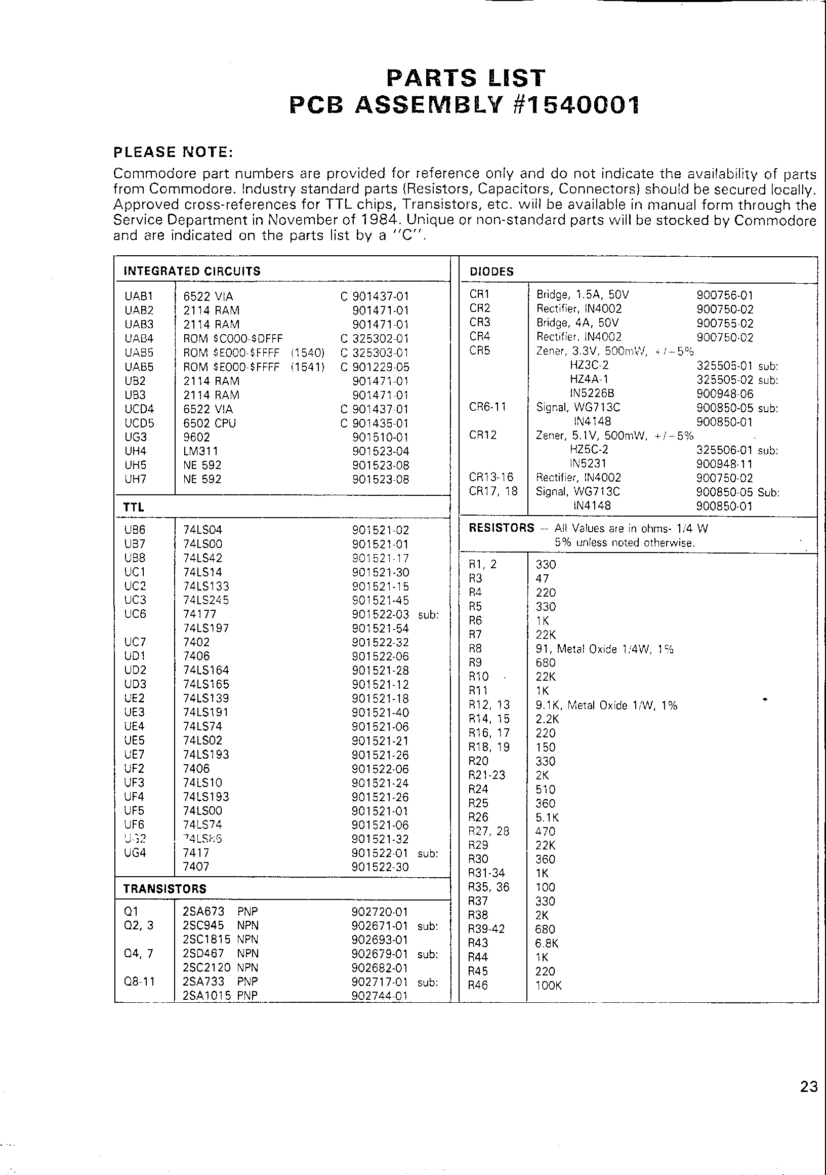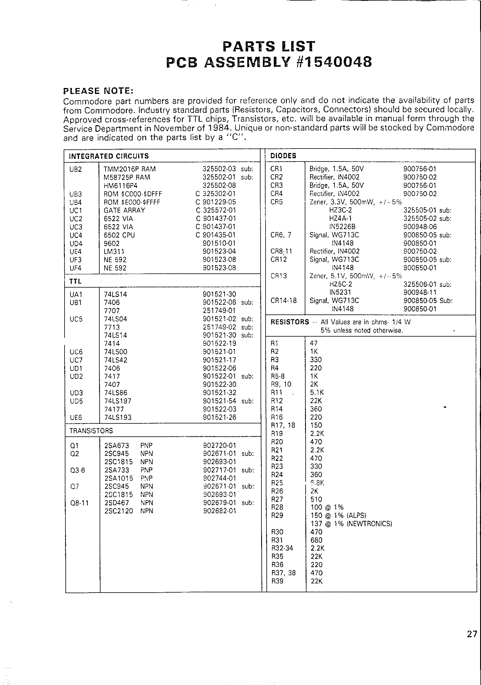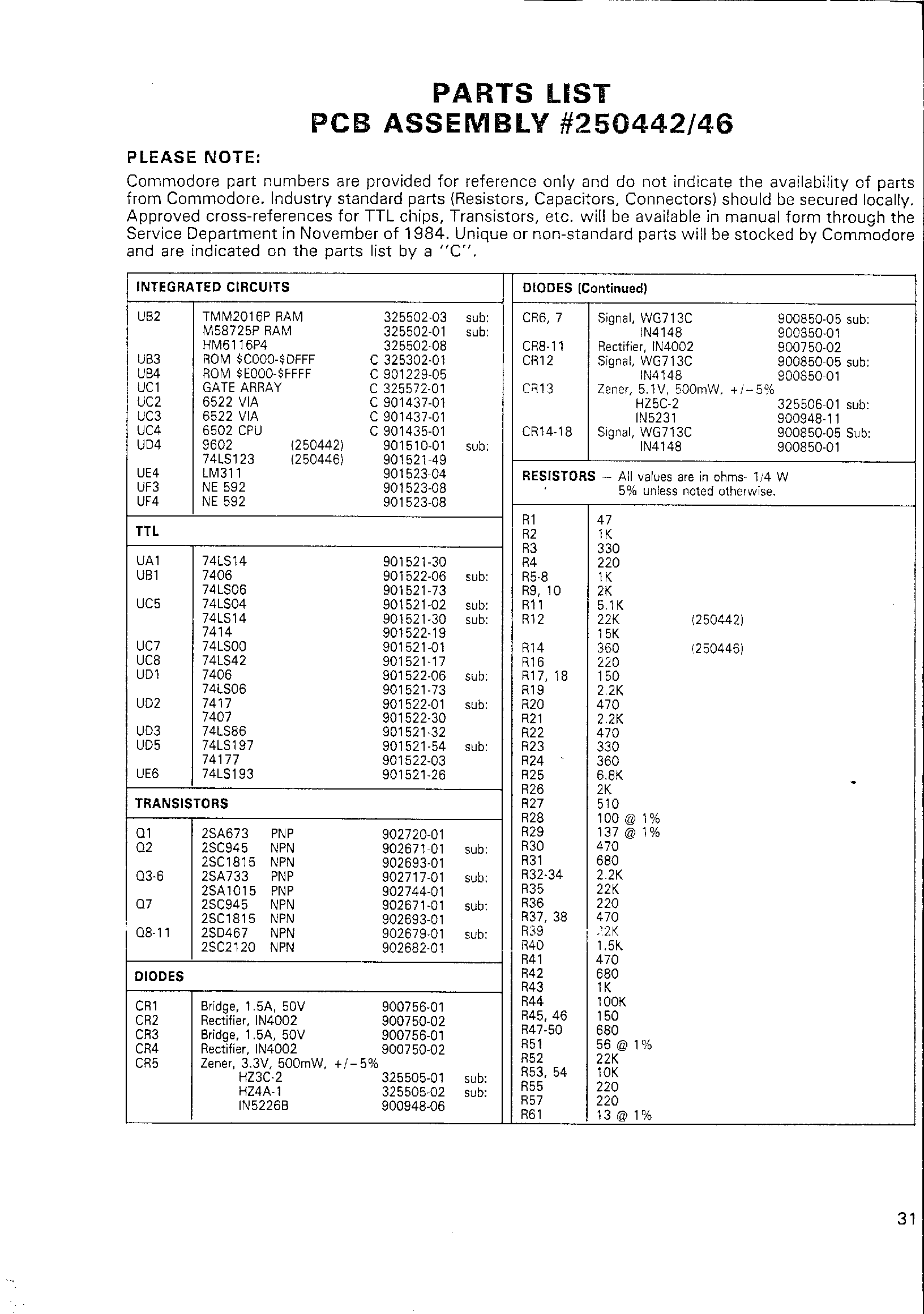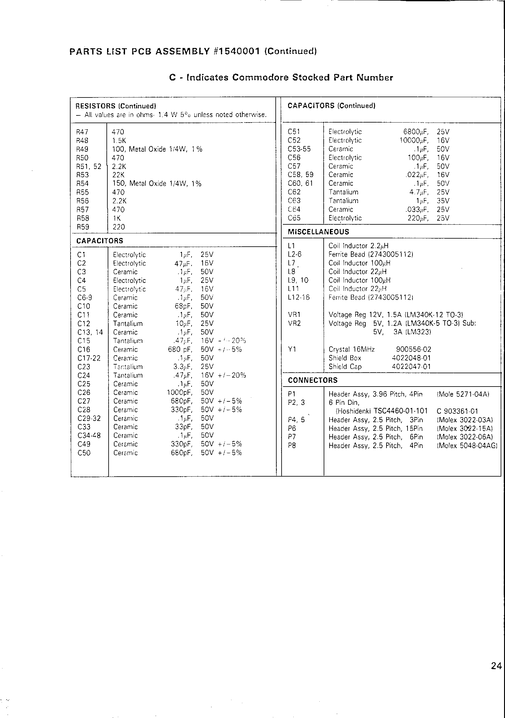 PARTS LIST (continued)