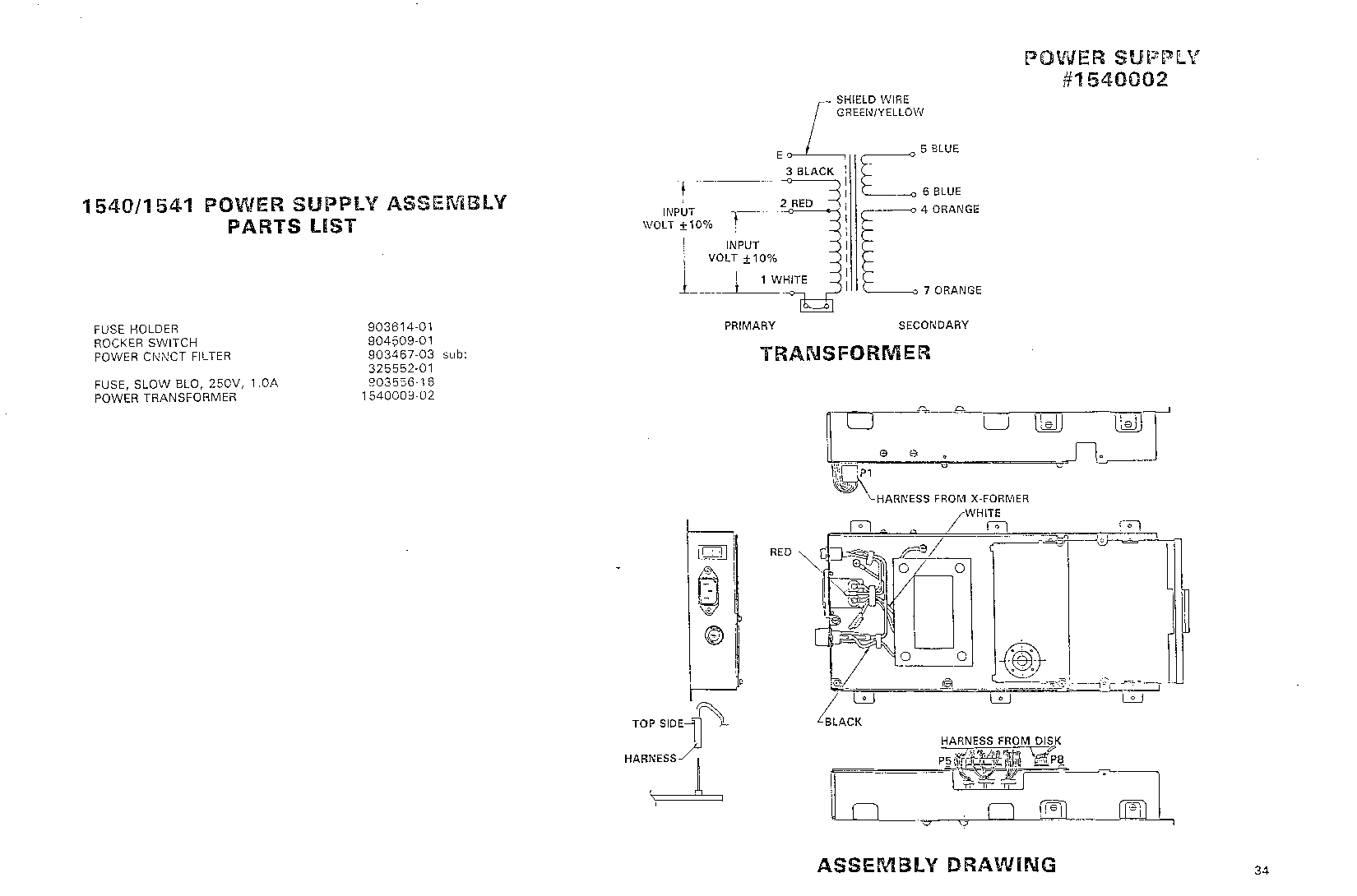 PARTS LIST, TRANSFORMER, ASSEMBLY DRAWING
