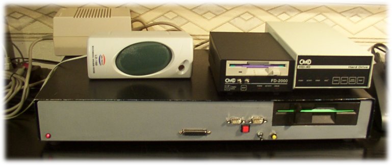Auf diesem Bild erkennt man auch einen der 3 Bolzen, auf denen ein Teil eines ehemaligen 1541-1 Chassis montiert wurde. Ich habe diesen einfach mit einer Blechschere in das passende Format gebracht und danach in das Gehäuse 'gestellt'. Auf der Rückseite des Rechners, sind eine Geräteadressen-Umschaltung (8/9) und eine Kernal-Umschaltung (Jiffy/Original) zu finden. Geplant sind nun noch "Steckdosen" für externe Laufwerke und eine Flash-ROM Erweiterung für die Floppy. Evtl. werden die zusätzlichen Tasten des C128 Keyboards auch noch belebt. Aber erstmal muss es nun ausgiebig getestet werden.:-) Zum Abschluss noch ein Bild ohne Tastatur. Das Netzteil auf dem Gehäuse gehört nicht zum Rechner. Der Lautsprecher verstärkt das Audiosignal eines 1084-Monitors. Dieser Umbau ist wohl nicht so einfach zu kopieren. Ein passendes neues Gehäuse in ausreichender Größe ist oft sehr teuer. Die restlichen Komponenten kann man aber günstig organisieren. Oft ist ein alter PC eine Quelle für viele brauchbare Teile. Serielle Buchsen auf Slotblechen, Eprom, Netzteil kann man z.B. meistens verwenden. Wenn man seinen C64 gerne in einen Tower einbauen möchte, kann man auch das Gehäuse verwenden. Wenn man die notwendige Kreativität und etwas Geschick mitbringt, sollte das eigentlich kein zu großes Problem sein. Das Prinzip des Einbaues koennte man auch in einem anderen Gehäuse anwenden. Ich verschraube und stecke Verbindungen lieber, als alles fest zu verbinden und schnell zusammen zu kitten. Man ärgert sich später nur über die eigene Faulheit. ;-) |