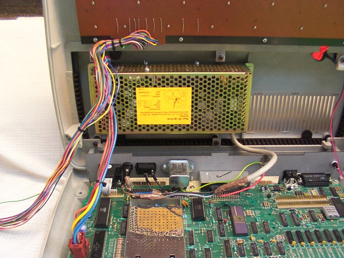 Das Netzteil Links im Bild ein typisches Merkmal eines P500. Dieser verfügt gegenüber den CBM 600ern über ein Schaltnetzteil. Der zweite Joyport war zum Zeitpunkt des Fotos noch nicht angepasst. |