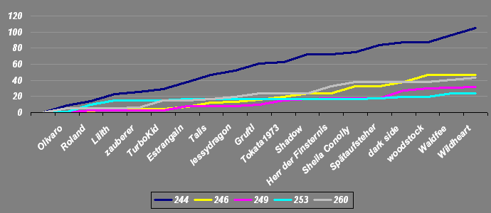 Bitte gebt wieder eure 5 Favoriten an, wobei Platz 1 die meisten Punkte und Platz 5 die wenigsten Punkte bekommt (Nach dem System 9-5-3-2-1).
