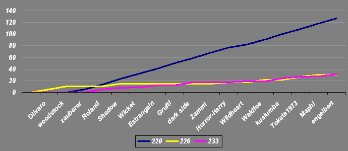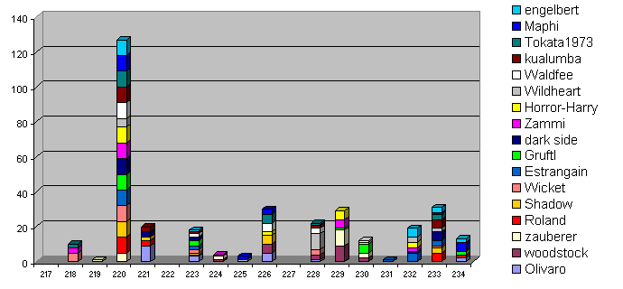 Bitte gebt wieder eure 5 Favoriten an, wobei Platz 1 die meisten Punkte und Platz 5 die wenigsten Punkte bekommt (Nach dem System 9-5-3-2-1).