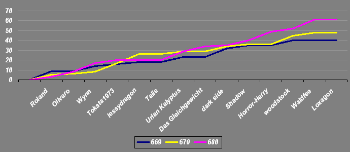 Bitte gebt wieder eure 5 Favoriten an, wobei Platz 1 die meisten Punkte und Platz 5 die wenigsten Punkte bekommt (Nach dem System 9-5-3-2-1).