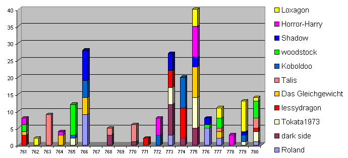 Bitte gebt wieder eure 5 Favoriten an, wobei Platz 1 die meisten Punkte und Platz 5 die wenigsten Punkte bekommt (Nach dem System 9-5-3-2-1).