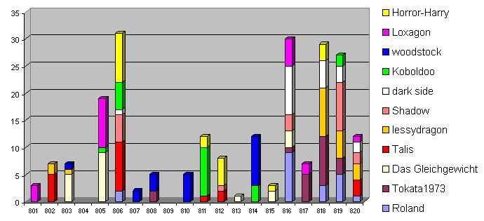 Bitte gebt wieder eure 5 Favoriten an, wobei Platz 1 die meisten Punkte und Platz 5 die wenigsten Punkte bekommt (Nach dem System 9-5-3-2-1).