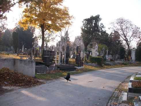 Hier ein Foto vom Wiener Zentralfriedhof. Leider war Coco Zamis da schon weg, und von den Krähen war auch nur noch eine da.