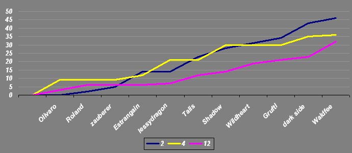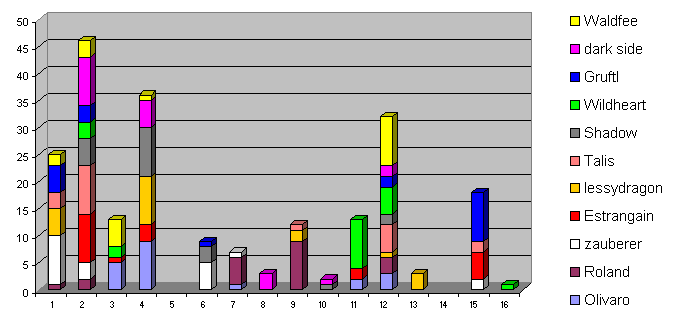 Bitte gebt wieder eure 5 Favoriten an, wobei Platz 1 die meisten Punkte und Platz 5 die wenigsten Punkte bekommt (Nach dem System 9-5-3-2-1).