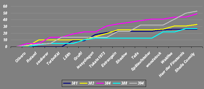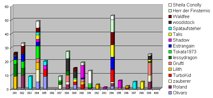 Bitte gebt wieder eure 5 Favoriten an, wobei Platz 1 die meisten Punkte und Platz 5 die wenigsten Punkte bekommt (Nach dem System 9-5-3-2-1).