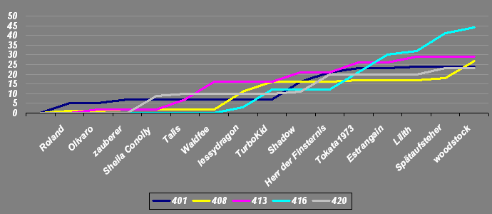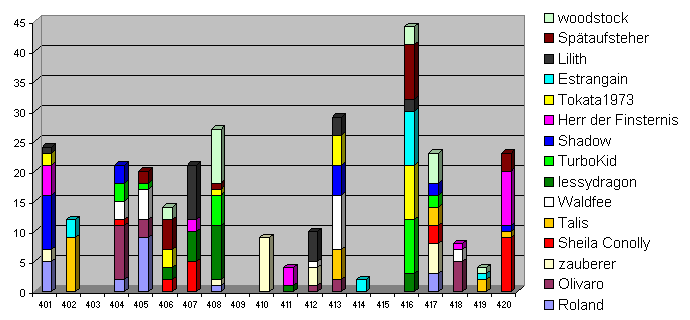 Bitte gebt wieder eure 5 Favoriten an, wobei Platz 1 die meisten Punkte und Platz 5 die wenigsten Punkte bekommt (Nach dem System 9-5-3-2-1).