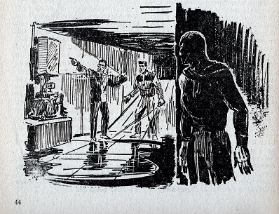 Der Zeichner Theo Thomas hat für den Fledermaus-Roman 300 auf den Seiten 12, 23, 30/31 und 44 vier Innenillustrationen gezeichnet. Dies ist eine davon.