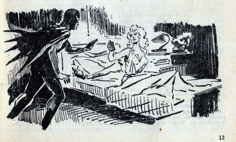Der Zeichner Theo Thomas hat für den Fledermaus-Roman 376 auf den Seiten 13, 20, 31 und 44 vier Innenillustrationen gezeichnet. Dies ist eine davon.