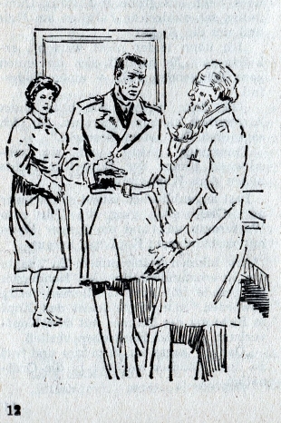 Der Zeichner Theo Thomas hat für den Fledermaus-Roman 377 auf den Seiten 12, 21, 36 und 47 vier Innenillustrationen gezeichnet. Dies ist eine davon.