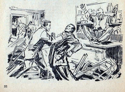 Der Zeichner Theo Thomas hat für den Fledermaus-Roman 388 auf den Seiten 11, 22, 32 und 50 vier Innenillustrationen gezeichnet. Dies ist eine davon.