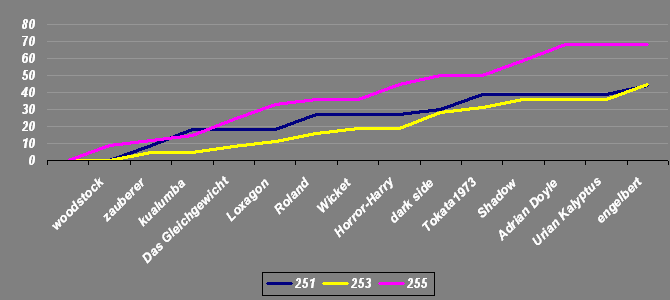 Bei Punktgleichheit wird der Roman mit der häufigeren höheren Punktzahl besser eingestuft.