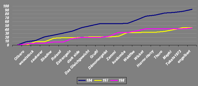 Bei Punktgleichheit wird der Roman mit der häufigeren höheren Punktzahl besser eingestuft.