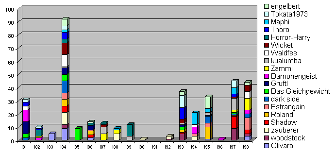 Bitte gebt wieder eure 5 Favoriten an, wobei Platz 1 die meisten Punkte und Platz 5 die wenigsten Punkte bekommt (Nach dem System 9-5-3-2-1).